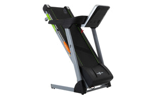 - Pantalla 5” Display blue táctil: Velocidad, distancia, tiempo, calorías, ritmo cardiaco, inclinación