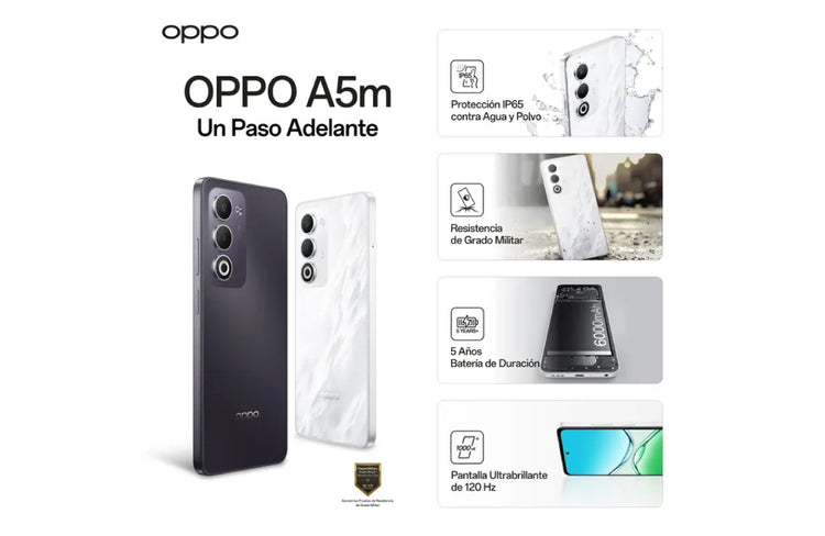 Celular Oppo A5M 256GB 8GB Morado rápido, fluido y resistente