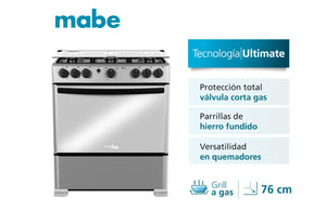 Estufa de Piso Mabe 6 Puestos Gas Natural Inox EMC30KXX6