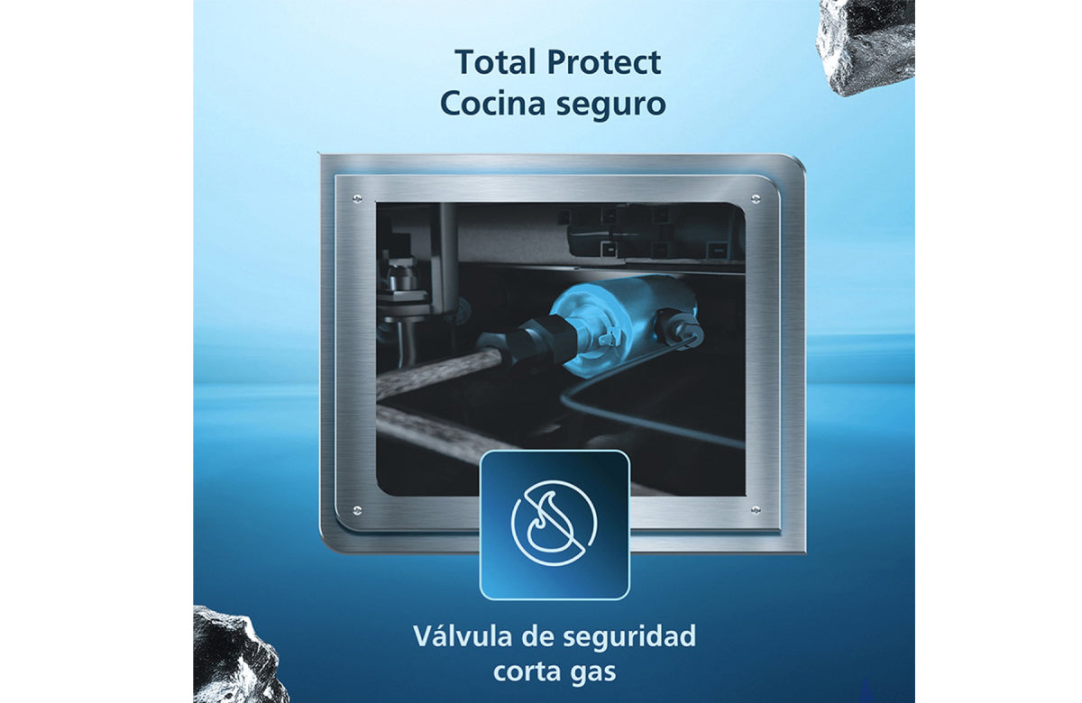 6 quemadores multitamaño para preparaciones rápidas y sin consumir más gas, de encendido electrónico por botón