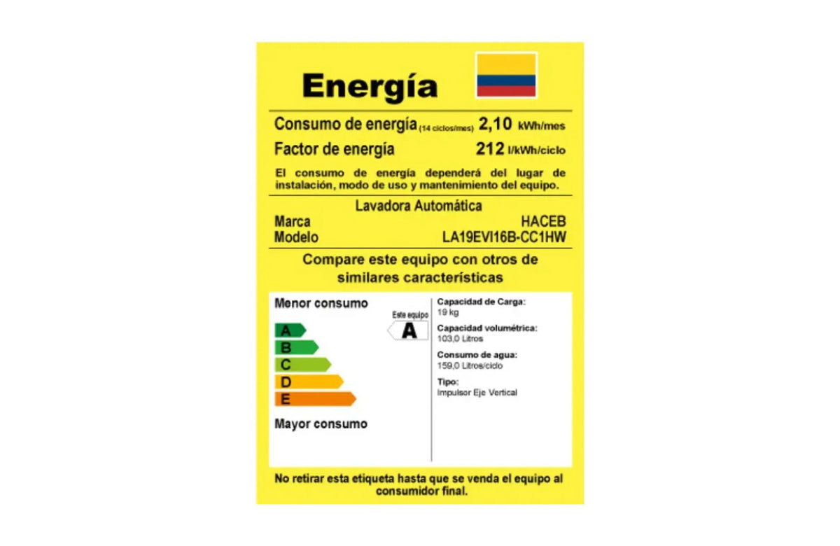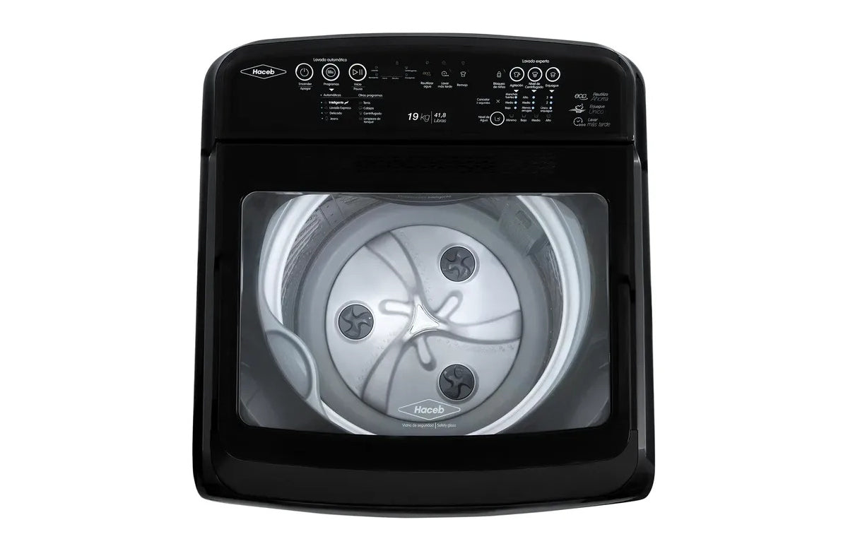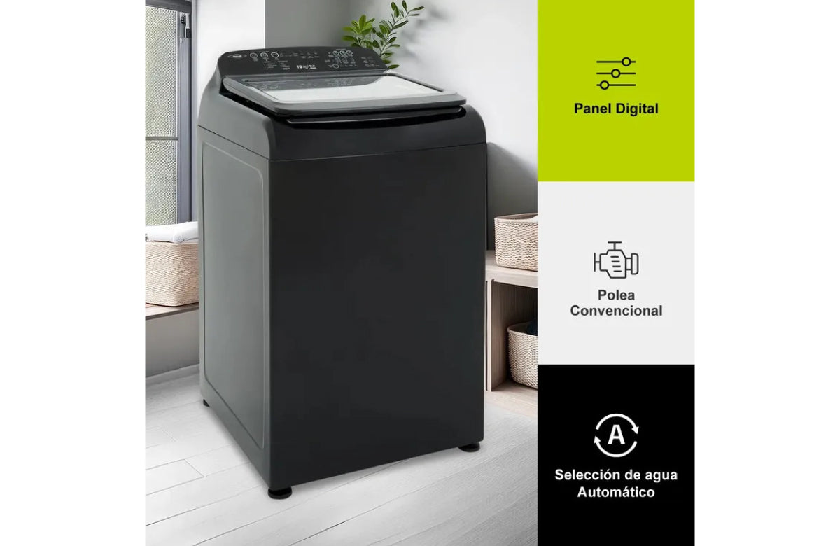 Con nuestra Lavadora Haceb IVY 19 KG Digital Negra vas a poder optimizar el tiempo de lavado y alargar la vida de tus prendas. Cuenta con un tablero digital con tecnología que te ofrece programas y funciones especiales que se adecuan a cada tipo de prenda. Incluye 5 programas automáticos y tecnología de lavado profundo. Posee filtración activa para reducir pelusas en tu ropa, sistema ECO para ahorrar agua y aerocentrifugado para prendas más secas.
