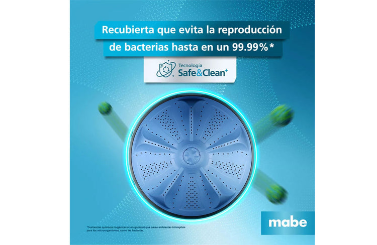 Lavadora Mabe Doble Tina 16KG LMD6124HBAB0 con Tecnología Safe & Clean, recubrimiento en propela y en tina de centrifugado que evita la reproducción de baterias hasta un 99.99%