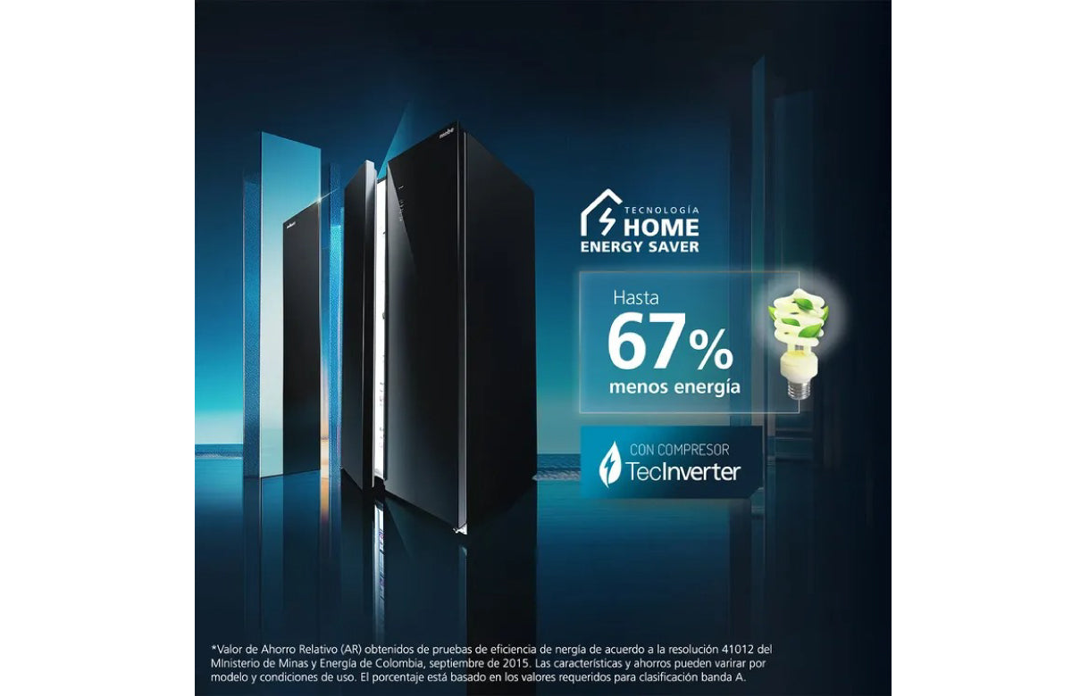 Cuenta con Compresor Inverter de velocidad variable que brinda un funcionamiento más eficiente alcanzando la temperatura ideal en menos tiempo y ahorra hasta un 67% de energía. Display Digital que permite controlar todas las funciones del refrigerador de manera sencilla e intuitiva
