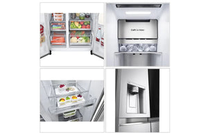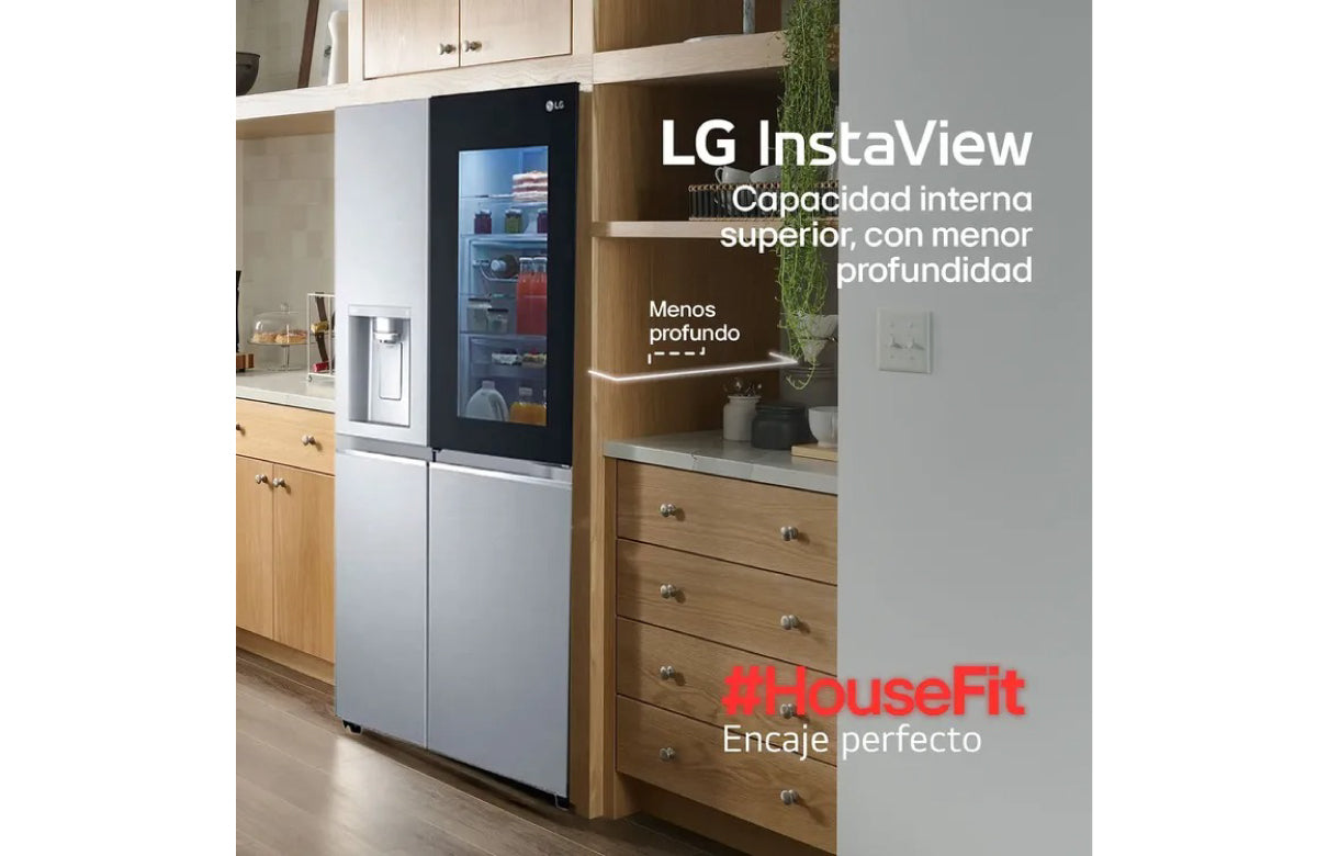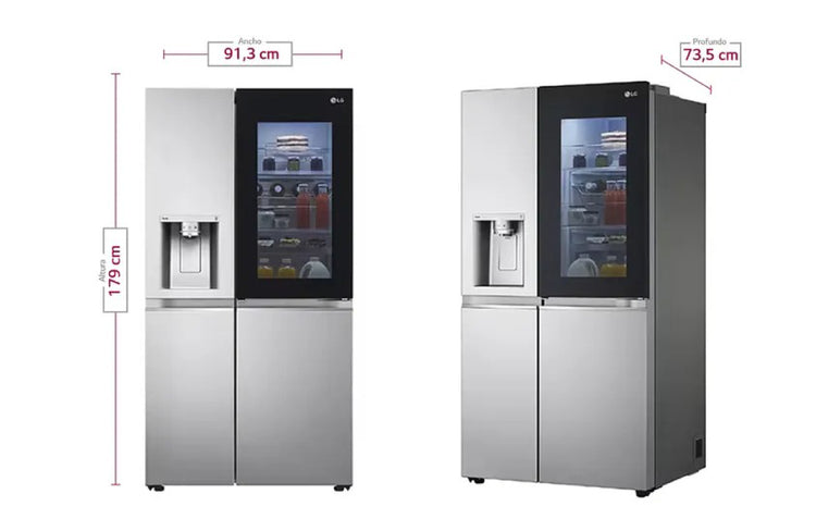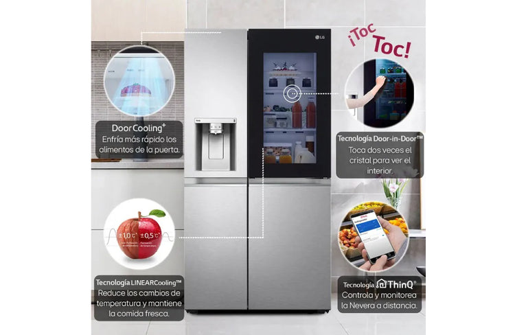 Nevecon LG tipo Side by Side InstaView solo con un TocToc en la puerta de tu nevera puedes mirar el interior sin necesidad de abrirla evitando la perdida de aire frío dentro del refrigerador, para ti una nevera que encaja con tu espacio más delgado, menos profundo y con mayor capacidad de almacenamiento