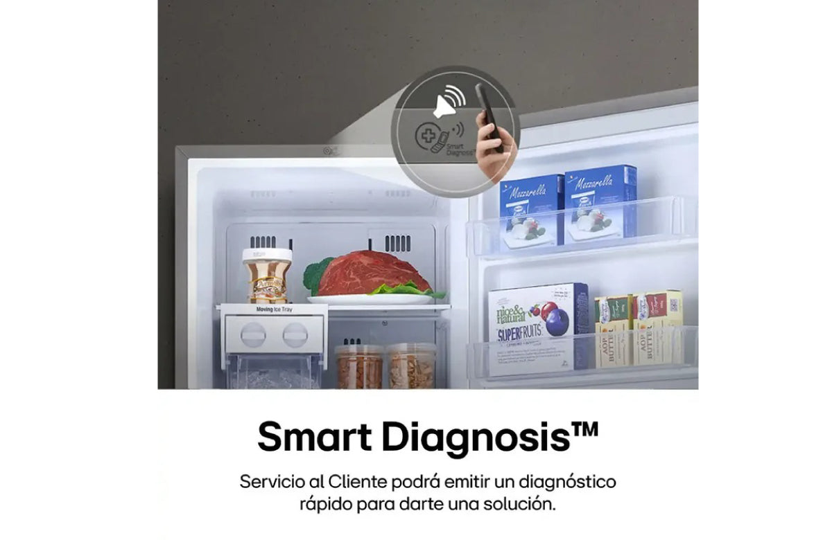Smart Diagnosis™ de LG es una manera fácil de solucionar tus problemas. Solo debes llamar al Servicio al Cliente de LG, coloca tu teléfono junto a la nevera y Servicio al Cliente podrá emitir un diagnóstico rápido para darte una solución