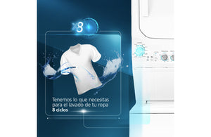 ¡Ahorra tiempo y esfuerzo! Programa fácilmente las funciones según tus necesidades y deja todo en manos de la inteligencia artificial, la cual decide la cantidad de agua, tiempo y temperatura que maximiza la limpieza para el mejor cuidado de la ropa