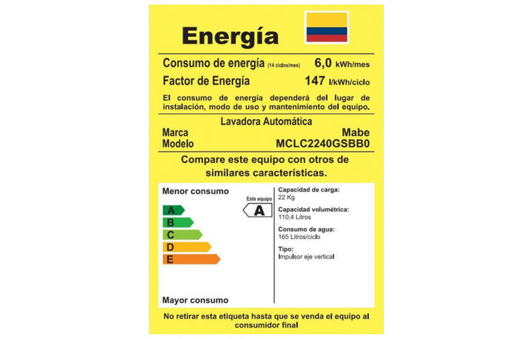 Torre de Lavado y Secado Mabe a Gas 22 KG MCLC2240GSBB0