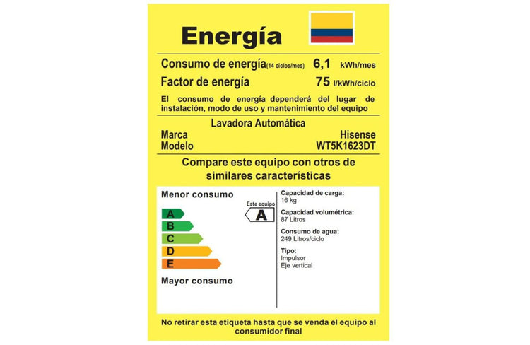 Lavadora Hisense Carga Superior 16 KG WT5K1623DT